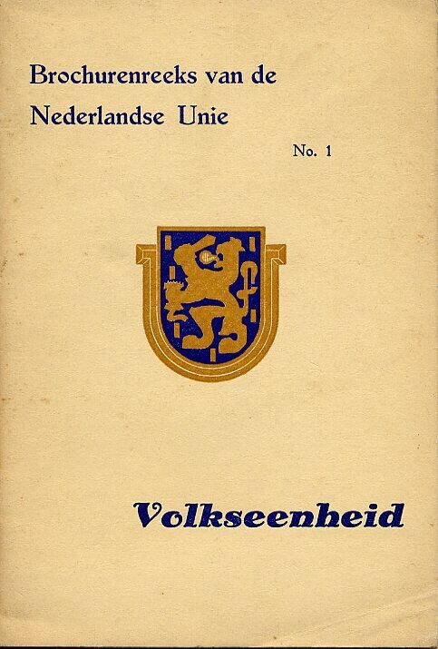 Het betreft twee identieke exemplaren uit een boekenreeks van de Nederlandse Unie en wel nummer 1, getiteld: Volkseenheid. Op de titelpagina is het blauw-bruine logo gedrukt van de Nederlandse Unie. Het logo stelt de letter 'U' voor met daarin een leeuw. Het boek telt 24 pagina's en is de eerste van een reeks toelichtingen op het programma van de Nederlandse Unie.