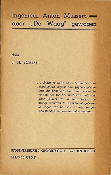 Een boekje over onder andere het leiderschap van Mussert. Het boekje omvat 23 pagina's. Na het verschijnen van deze uitgave diende Mussert een klacht tegen de schrijver in. De totale oplage bedroeg 12.000 exemplaren.
