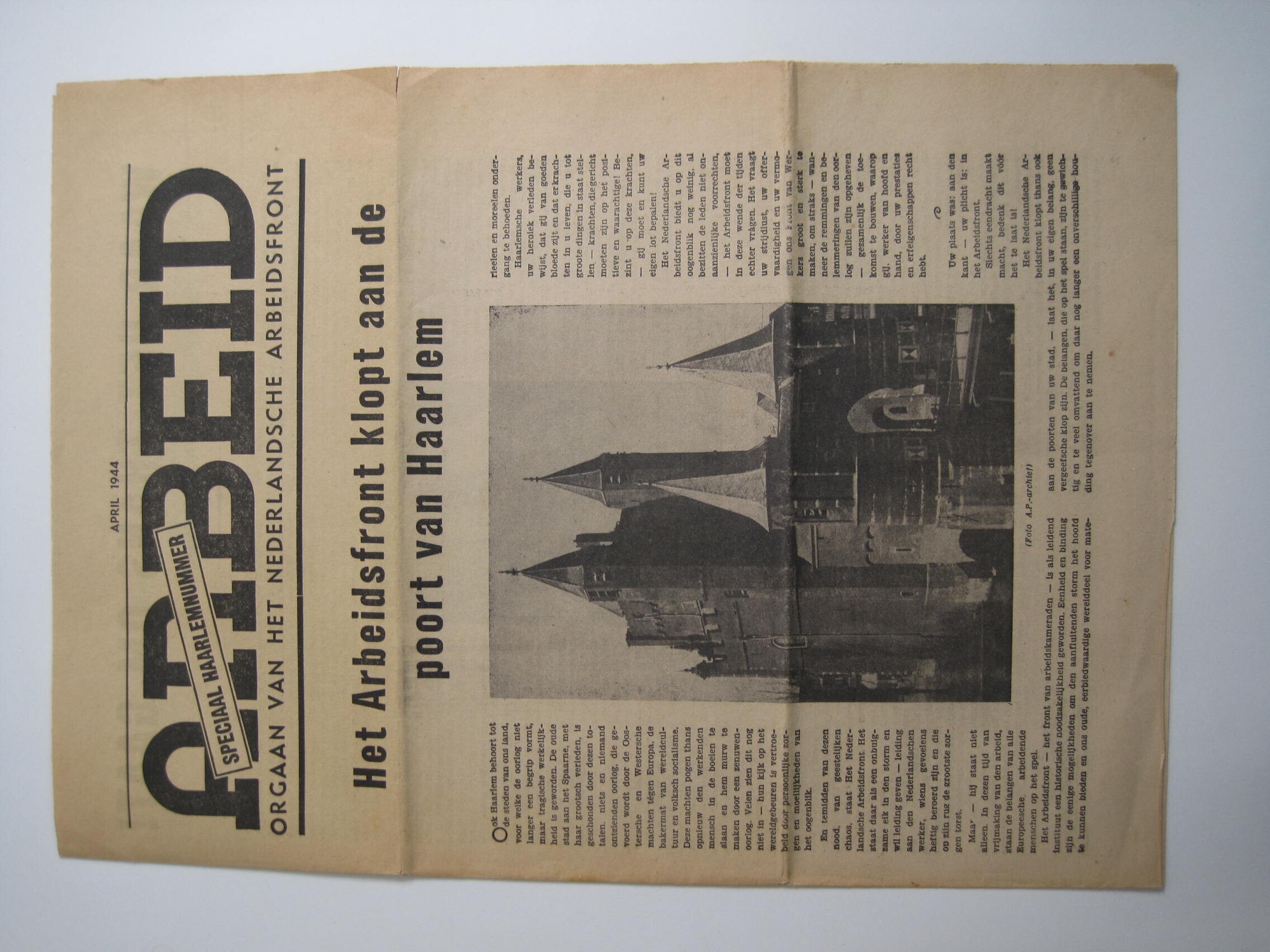 Een uitgave van " Arbeid", Orgaan van het Nederlandsche Arbeidsfront. Speciaal Haarlemnummer april 1944.
