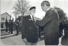 Nummer 2 van serie van 11 Huldiging van veteranen uit Canada en Groot-Brittanië, de bevrijders van Ede, en onthulling van het bevrijdingsmonument op het Burgemeester van Dijkeplein te Ede door burgemeester mr. W. Blanken. Burgemeester mr. W. Blanken decoreert één van de veteranen.