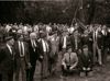 Herdenking van de luchtlandingen door de Airborne divisie in september 1944 op de Ginkelse Heide. De luchtlanding ging niet door i.v.m. zeer slecht weer wat te zien is aan de legervoertuigen in de modder. Hier op de de heide aan de verlengde Arnhemseweg in Ede..