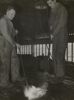 Op bruin papier geplakte zwart-witfoto van een schilder in de werkplaats in Amersfoort. Een schilder heeft een verfspuit in de hand en schildert het woord 'Nederland' op de zijkant van een wagon. Het wagonnummer NS 55789 is al op de wagon gespoten. Onder de foto is met een zwarte pen de titel 'werkplaats Amersfoort' en het voormalige objectnummer 3769 geschreven. Om de foto heen is met een blauw stempel drie keer 'geen negatief' gestempeld en is met en blauwe pen doorgestreept. Op de achterkant van de foto is met potlood geschreven 'Amersfoort schilderswinkel spuiten' en een zwart stempel 'Foto / Ned. Spoorw. / Afd. propaganda/ Gerdessen'. Ook is een zwart stempel van de 'Dienst van Economische Zaken / 6e Afdeeling / Foto- en Documentatie Bureau' met de datum 29 mrt 1947.