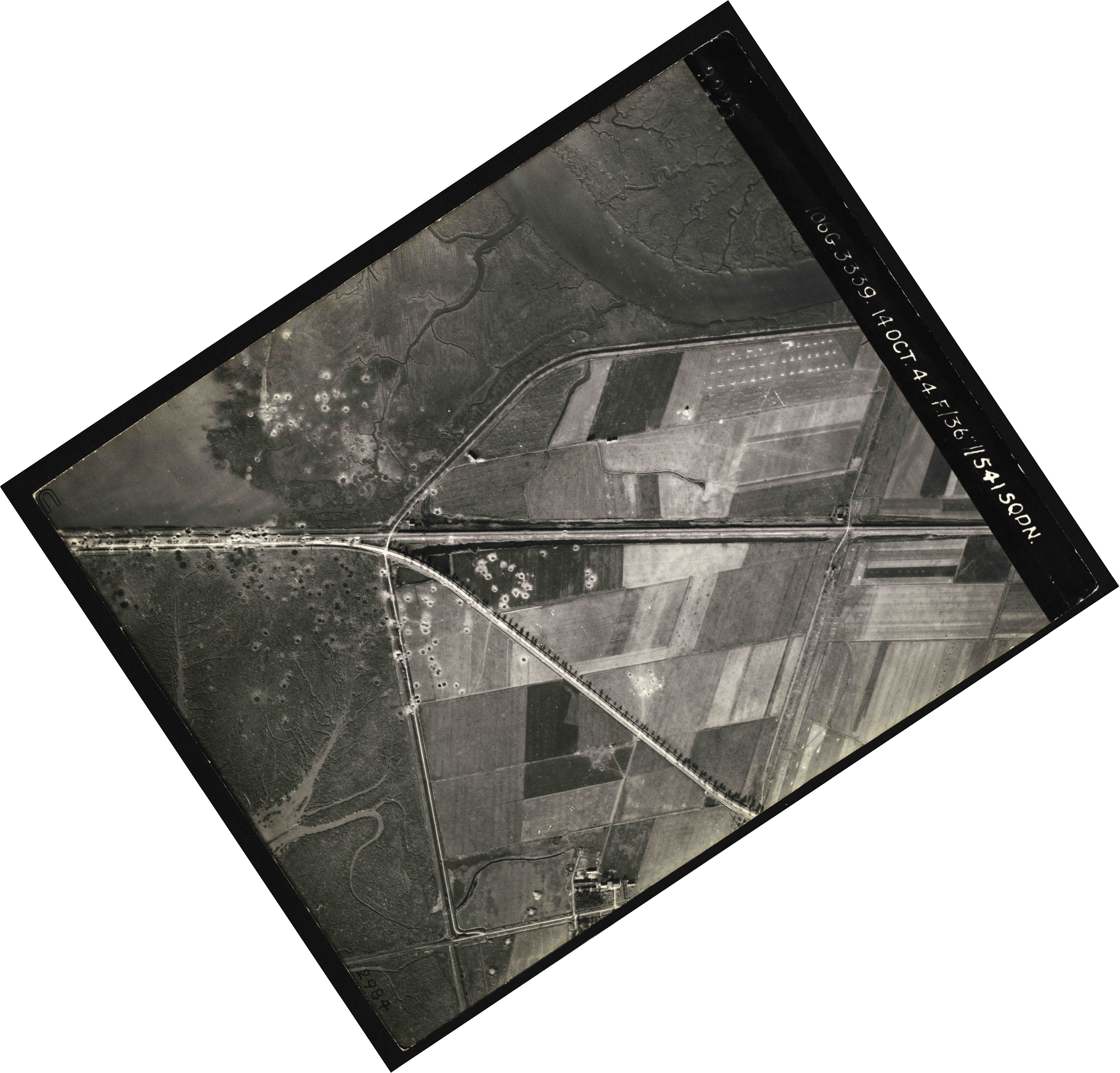 The collection comprises of approximately 94,250 photographs made by the Allied Air Force (RAF) flying over the whole of the Netherlands. The flight dates range from April 14th 1943 until June 18th 1947, but most are taken in 1944 and 1945 during the liberation of the Netherlands. The scale varies for each flight from 1 : 5,000 to 1 : 73,500, common is 1: 7,600 to 18,000. Besides detailed information about the situation during the war they contain valuable information about land use, archeology and topography.