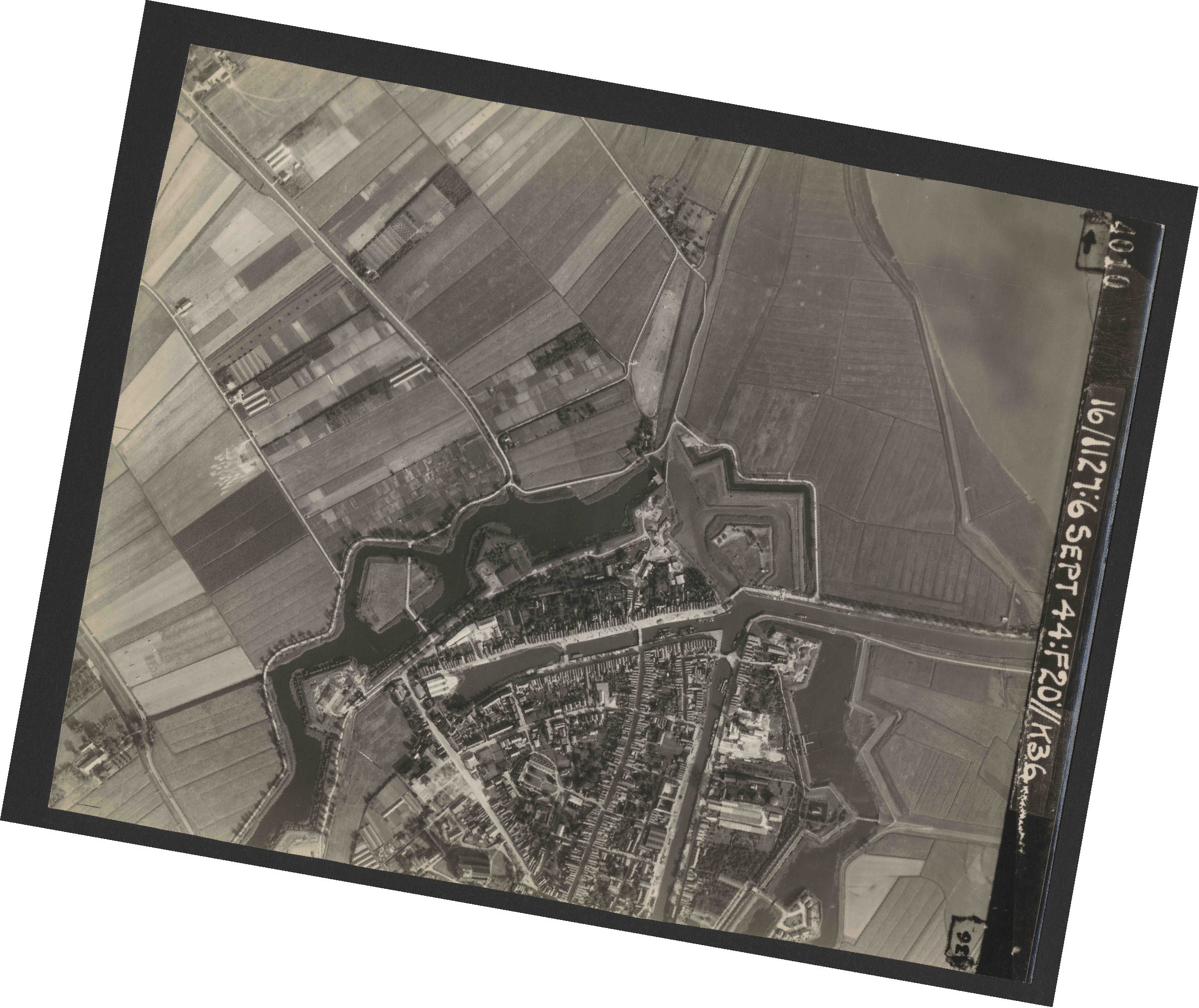 The collection comprises of approximately 94,250 photographs made by the Allied Air Force (RAF) flying over the whole of the Netherlands. The flight dates range from April 14th 1943 until June 18th 1947, but most are taken in 1944 and 1945 during the liberation of the Netherlands. The scale varies for each flight from 1 : 5,000 to 1 : 73,500, common is 1: 7,600 to 18,000. Besides detailed information about the situation during the war they contain valuable information about land use, archeology and topography.