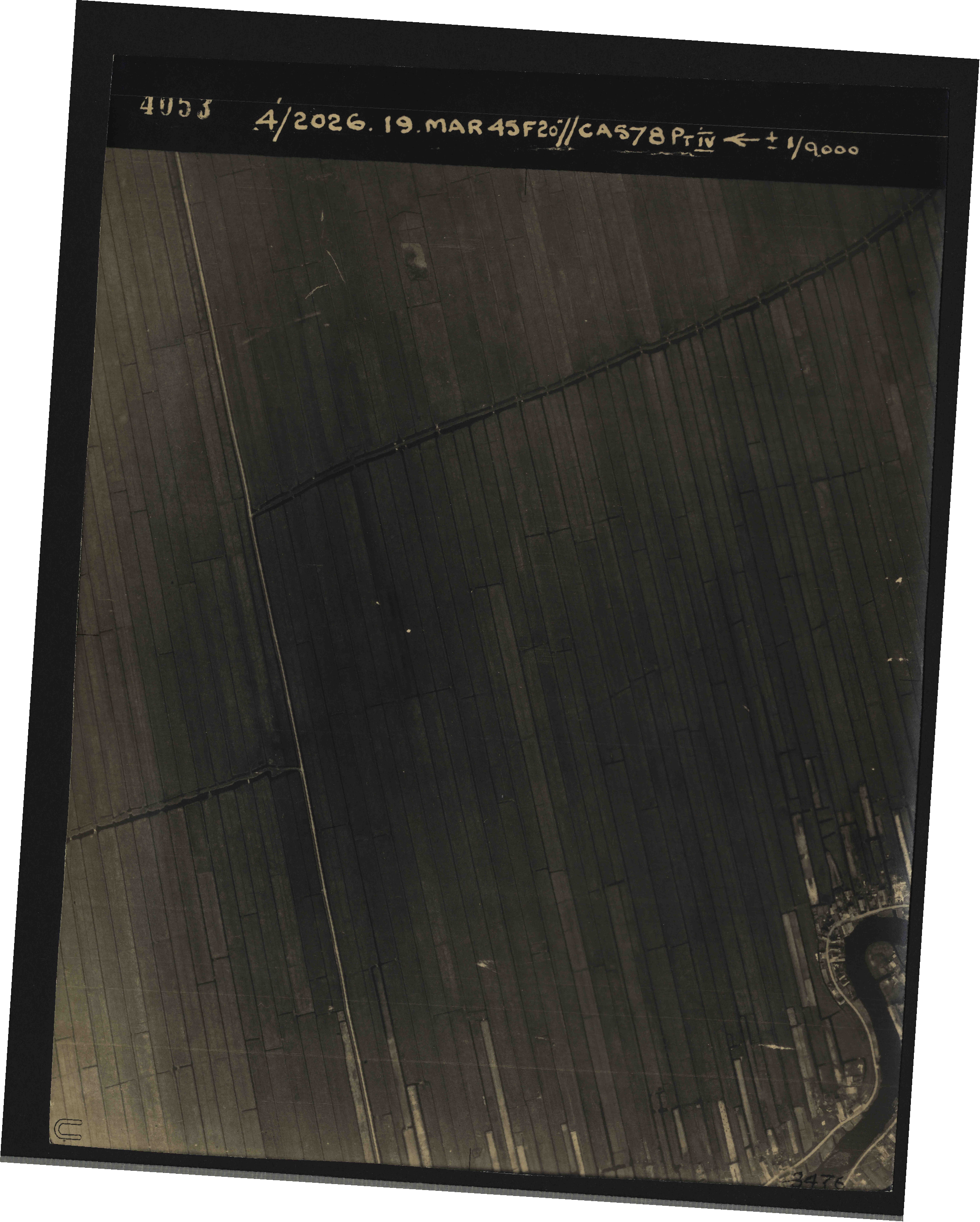 The collection comprises of approximately 94,250 photographs made by the Allied Air Force (RAF) flying over the whole of the Netherlands. The flight dates range from April 14th 1943 until June 18th 1947, but most are taken in 1944 and 1945 during the liberation of the Netherlands. The scale varies for each flight from 1 : 5,000 to 1 : 73,500, common is 1: 7,600 to 18,000. Besides detailed information about the situation during the war they contain valuable information about land use, archeology and topography.