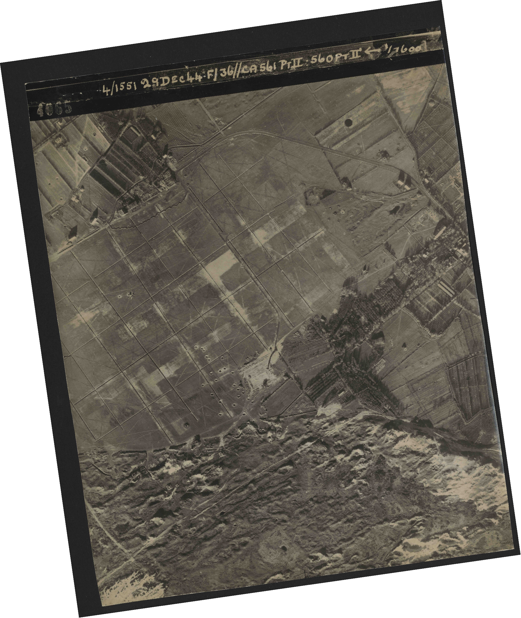 The collection comprises of approximately 94,250 photographs made by the Allied Air Force (RAF) flying over the whole of the Netherlands. The flight dates range from April 14th 1943 until June 18th 1947, but most are taken in 1944 and 1945 during the liberation of the Netherlands. The scale varies for each flight from 1 : 5,000 to 1 : 73,500, common is 1: 7,600 to 18,000. Besides detailed information about the situation during the war they contain valuable information about land use, archeology and topography.