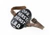 Ovaal zwart geëmailleerd armschildje met "UITKIJK-DIENST L.B.D.", met leren riempjes aan weerszijden