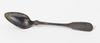 Theelepel in de vorm van kerkraam. Voorzijde: Sint Laurens met vlammen op de voorgrond en eronder "Rotterdam". Achterzijde tekst.