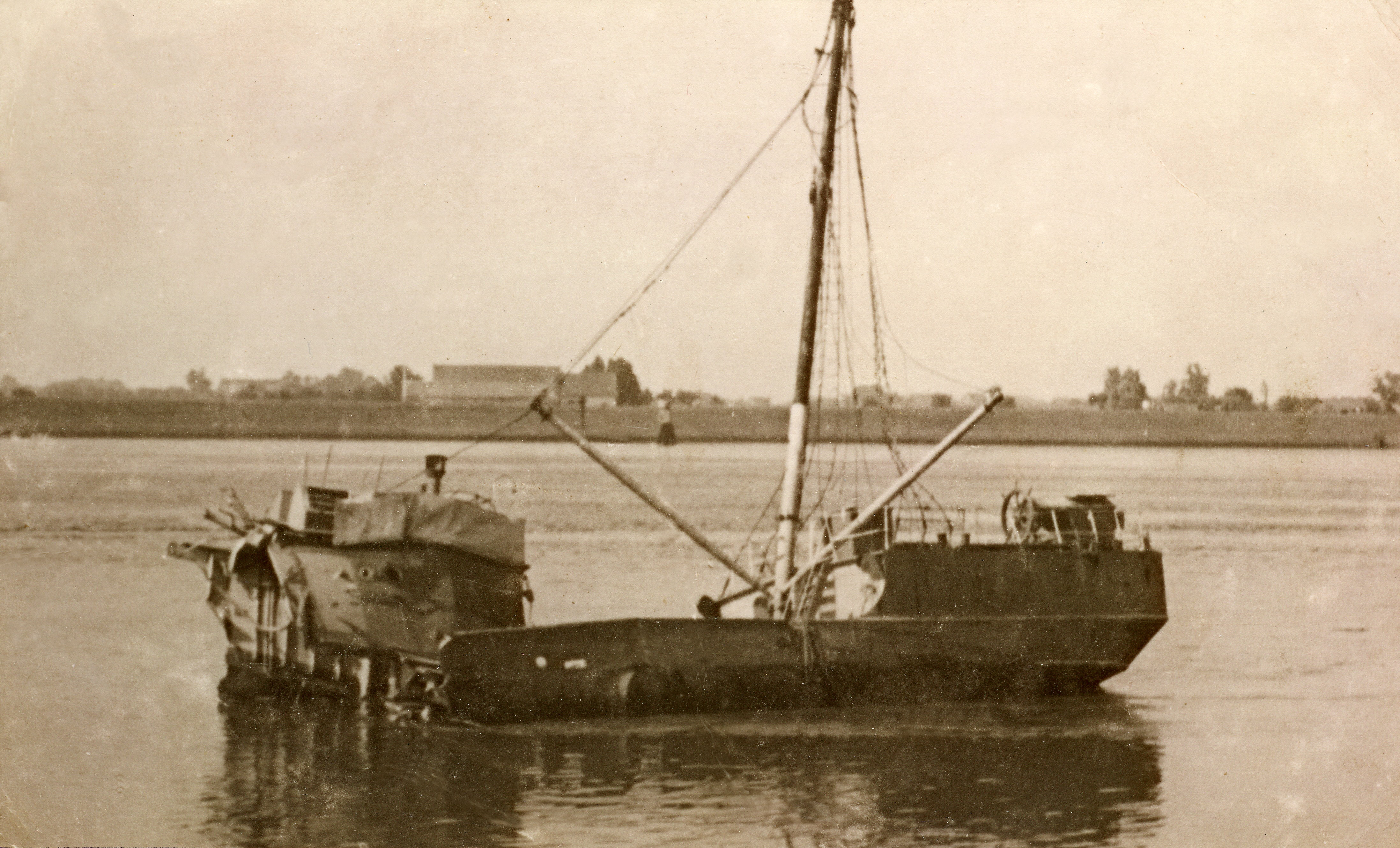 Op 11 mei 1940 liep Stoomloodsboot 19 (Beveiligingsvaartuig BV 19a) tussen Vlaardingen en Maassluis op een magnetische mijn waarbij 16 bemanningsleden om het leven kwamen. De mijnen waren door de Duitsers in het Scheur afgeworpen om scheepvaartverkeer onmogelijk te maken. De BV 19a was met de goudvoorraad van de Nederlanse Bank in Rotterdam onderweg naar Engeland. Links ligt het achterschip en rechts het voorstuk. Op 1 juni 1940 werd in opdracht van de Nederlandse Bank door W.A. van den Tak's Bergingsbedrijf begonnen met de berging van de goudstaven en het lichten van het wrak dat in twee stukken op de Noordoever werd gezet.