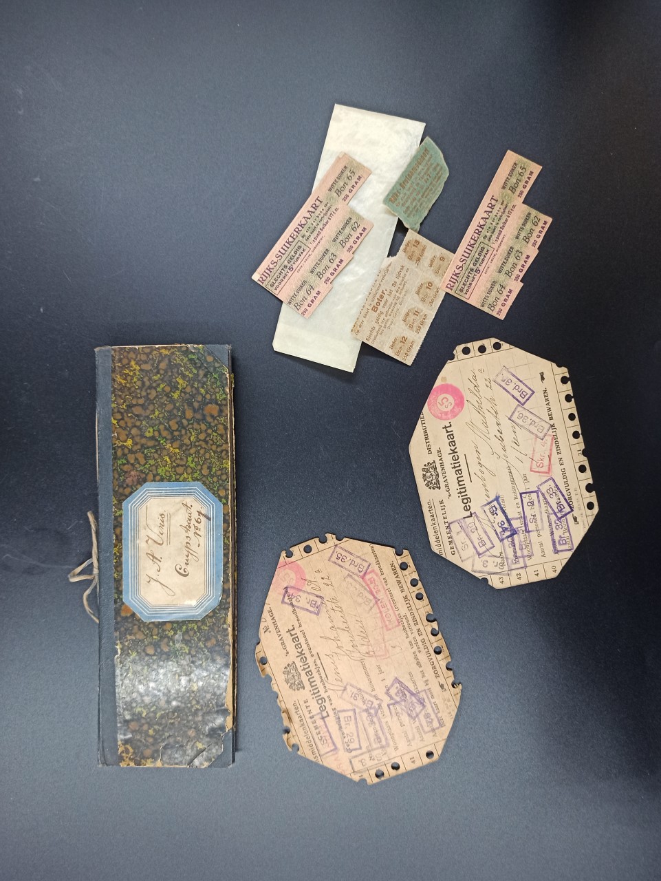 Bonnenboekje met diverse soorten bonnen uit de Tweede Wereldoorlog.