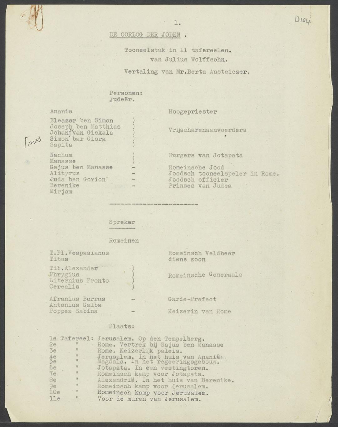 Hierbij ook: 'Beknopt overzicht van Joseph ben Matthias, van Julius Wolffsohn' door Berta Austeiczer (3 p.).