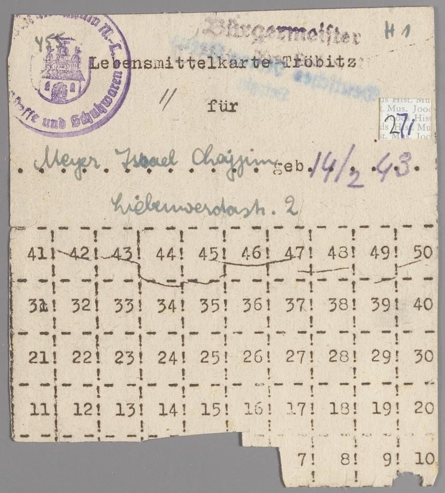 Bonkaart uit Tröbitz voor Israel Chajjim (=Ischa) Meijer, zoon van Jakob Meijer en Lize Meyer-Voet, 1945
