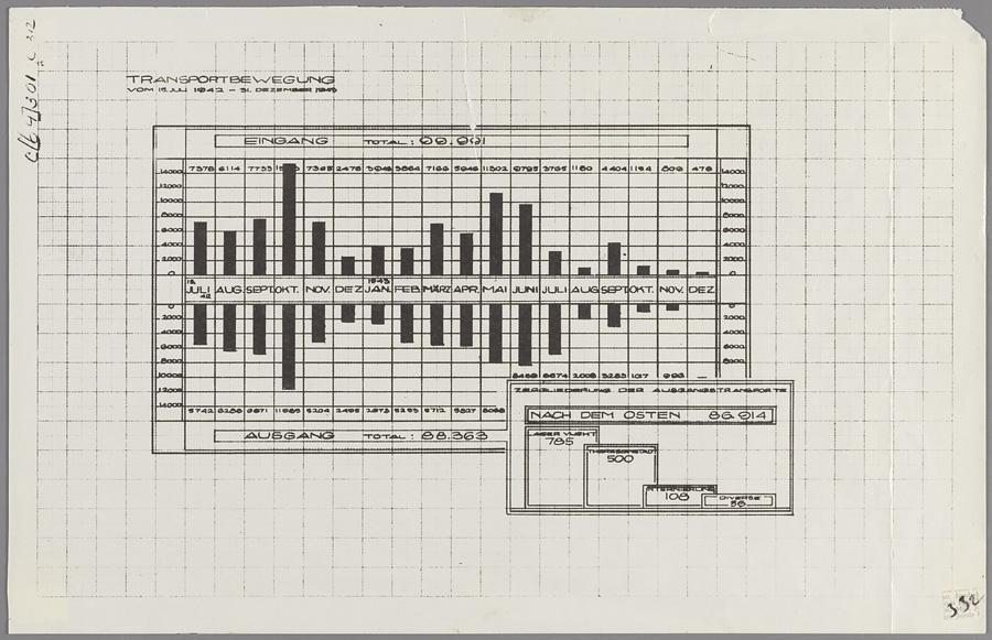 Fotokopie van statistiek transporten vanuit Westerbork, 15-6-1942 tot 31-12-1943