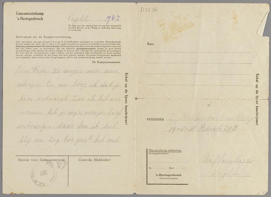 Brieven (4) van Elisabeth Halberstadt-Van Praag, Celina van Praag en Theresia van Praag uit concentratiekamp Vught, 1943
