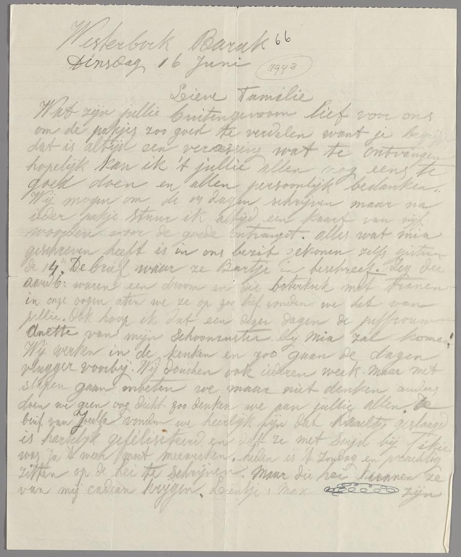 Brieven (4) van o.a. Martha en Rachel Coini, Liese Ladrer in de onderduik(?) en in Westerbork, waarin wordt gevraagd naar leden van de familie Joachimsthal, juni-juli 1943
