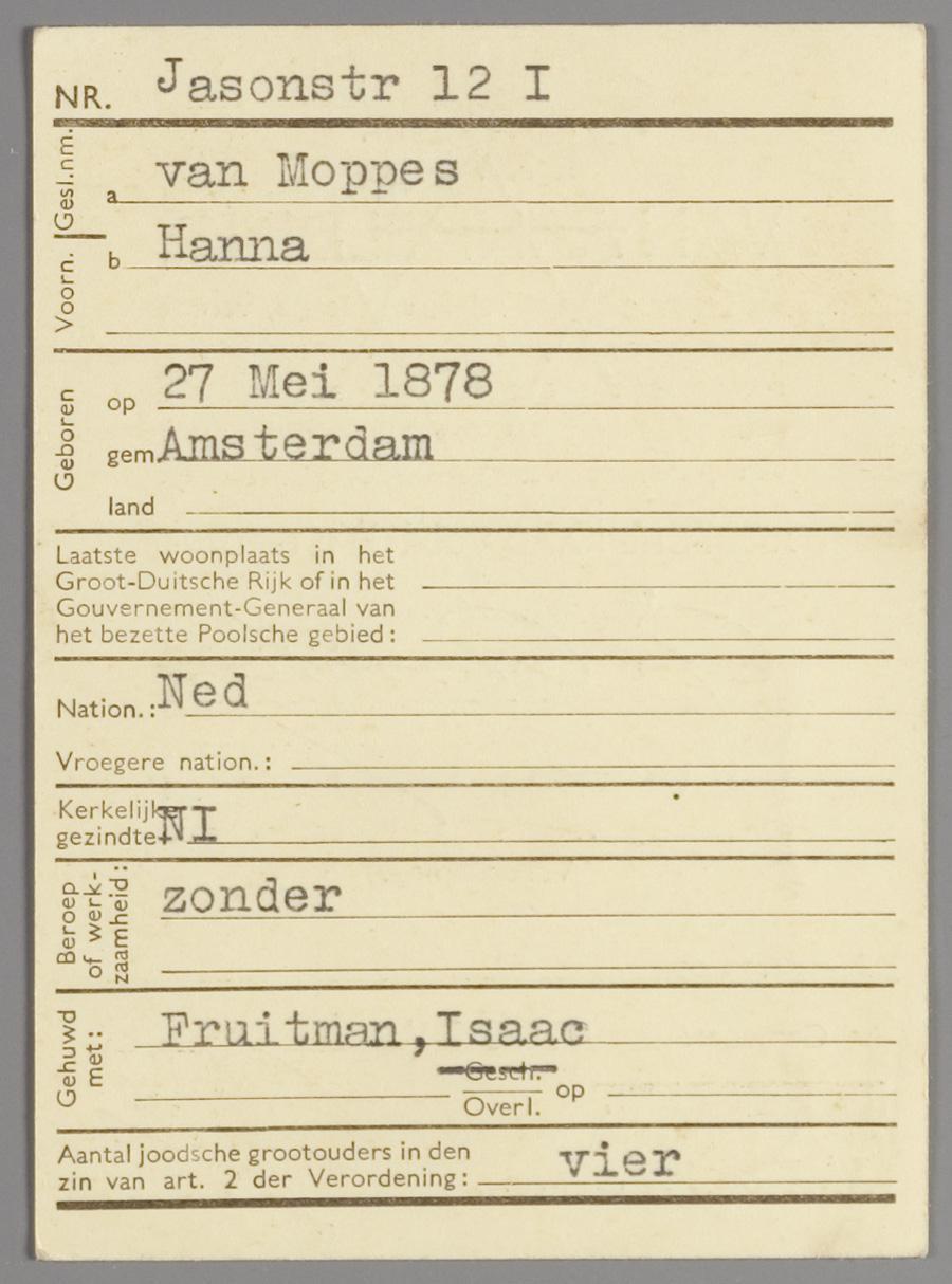 Identificatienummer van Joods Cultureel Kwartier