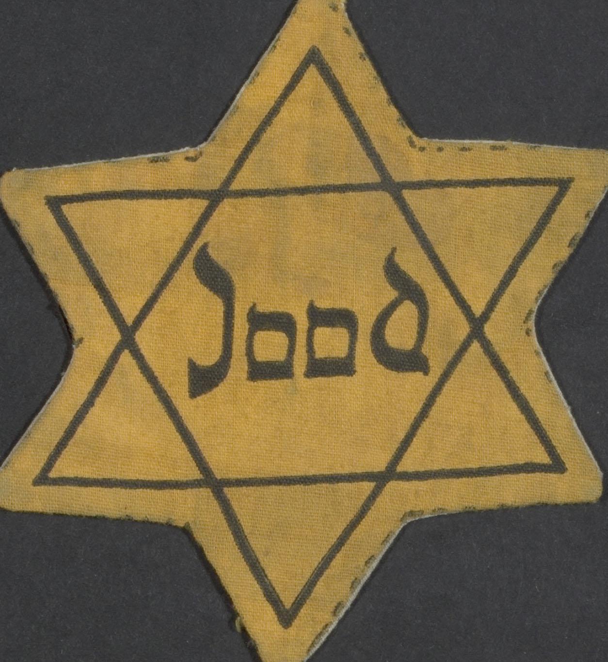 Jodensterren (36), waarvan 21 met opdruk 'Jood' (23 gebruikt, 4 ongebruikt, 1 opgeplakt), en 16 met opdruk 'Jude'