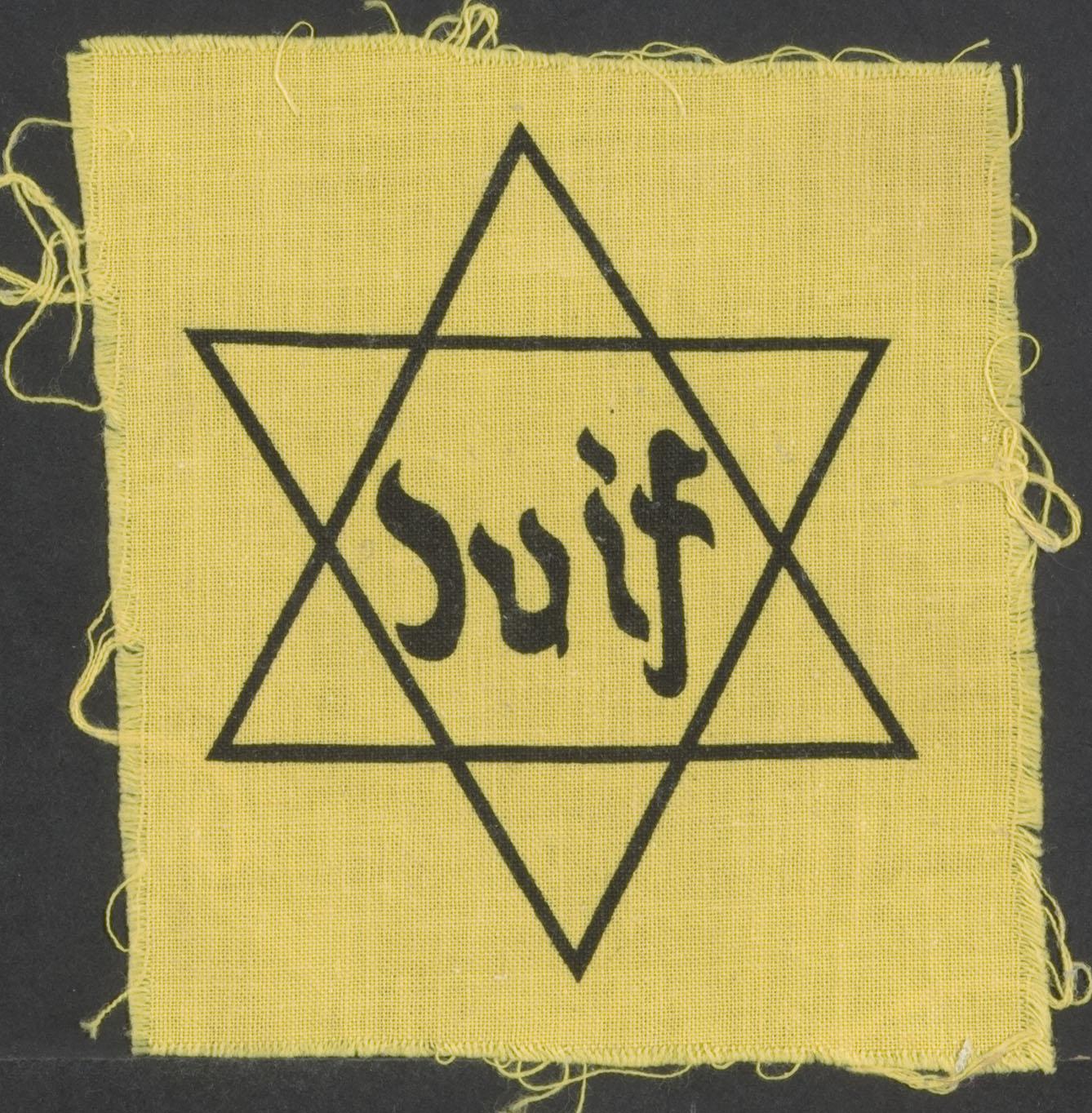 Geel katoenen jodenster met opdruk Juif, 1942/3