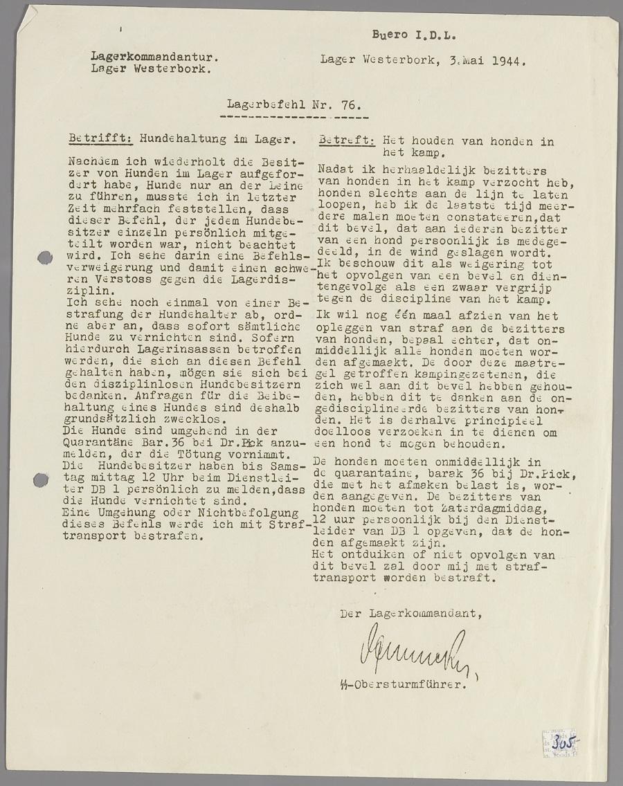 Lagerbefehl nr. 76, Westerbork, mei 1944