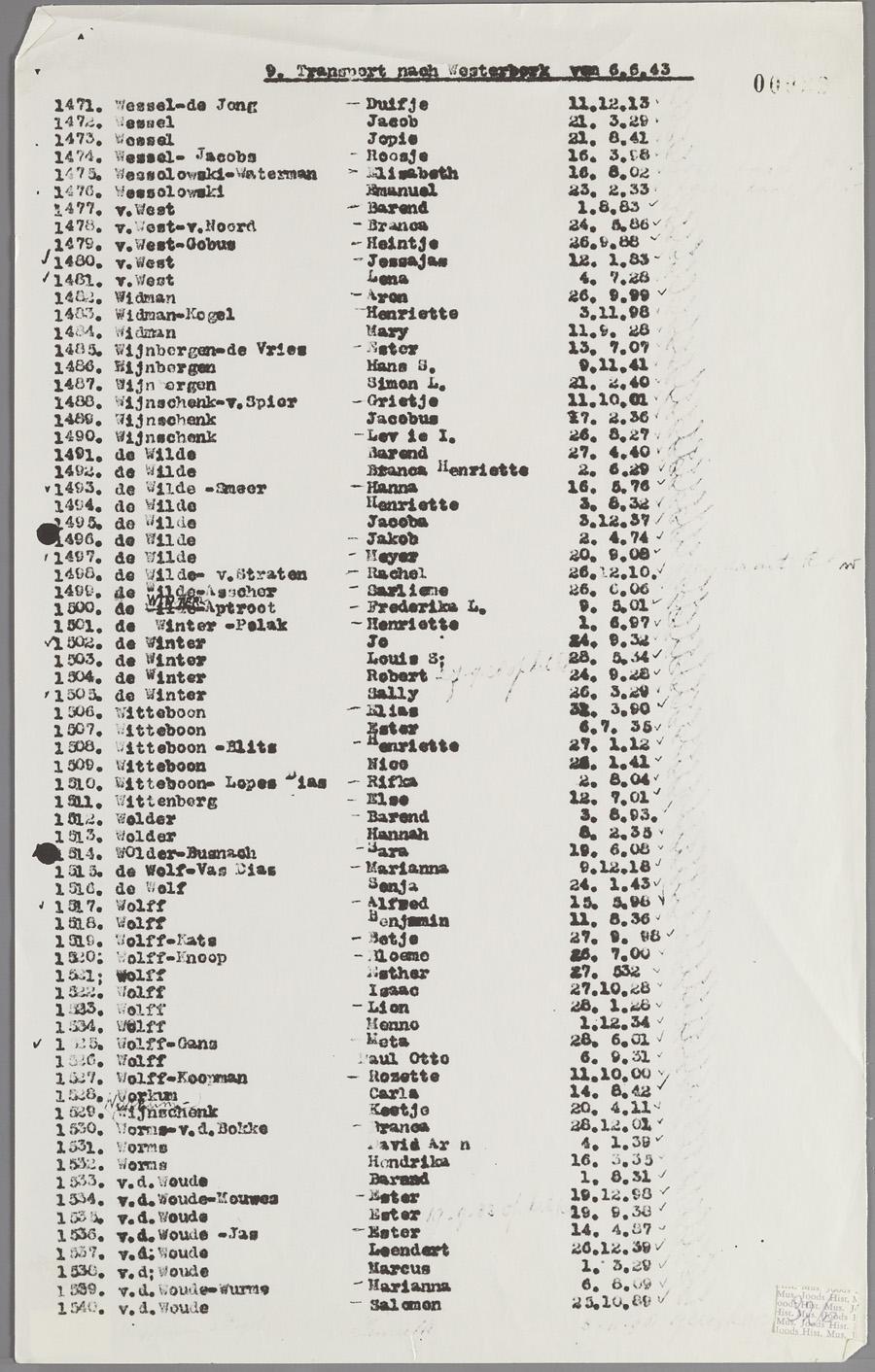 9. Transport nach Westerbork von 6.6.43