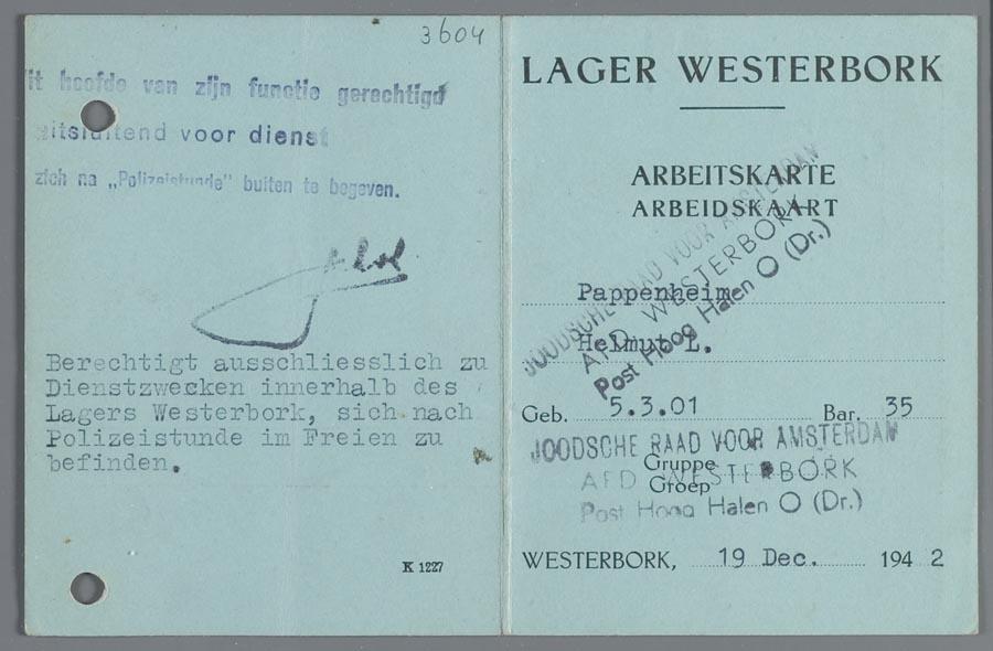 Documenten uit Westerbork (6) m.b.t. Helmut L. Pappenheim e.a., 1942-1943