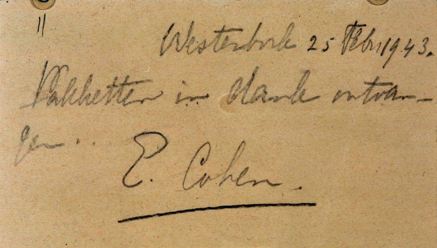 Briefkaart van E. Cohen in Westerbork aan L.Ph. Polak met dank voor ontvangen pakket, februari 1943