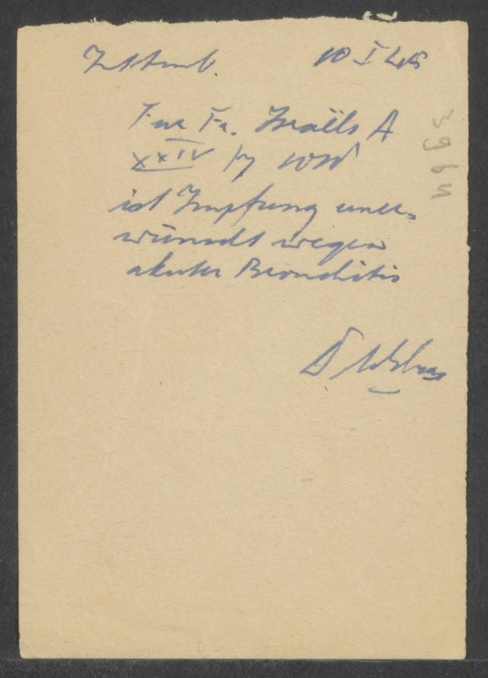 Verklaring van arts Reinisch dat A. Israels bronchitus heeft, 1945