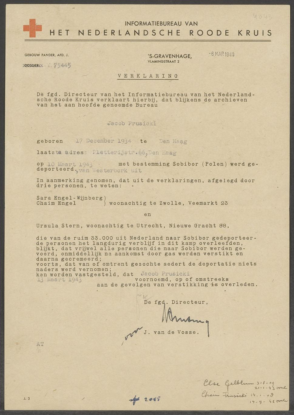 Verklaring v/h Ned. Rode Kruis m.b.t. overlijden J. Prusicki, (1943), 1948