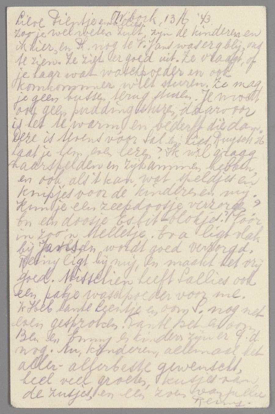 Brieven (6) van haar moeder Jansje Mok-Benninga en briefkaarten (3) van familieleden en bekenden aan Pien Mok in Amsterdam en Barneveld, 1943