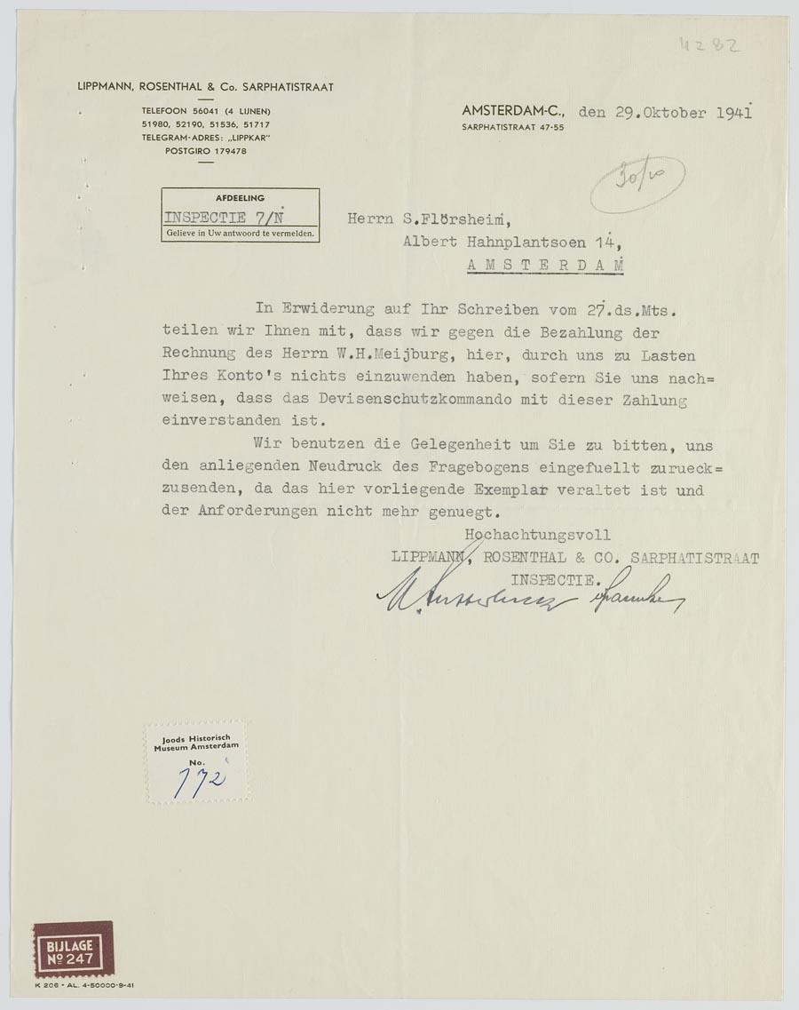 Brieven (14) van Lippmann, Rosenthal & Co aan S.J. Flörsheim en zijn gevolmachtigden, 1941-1943