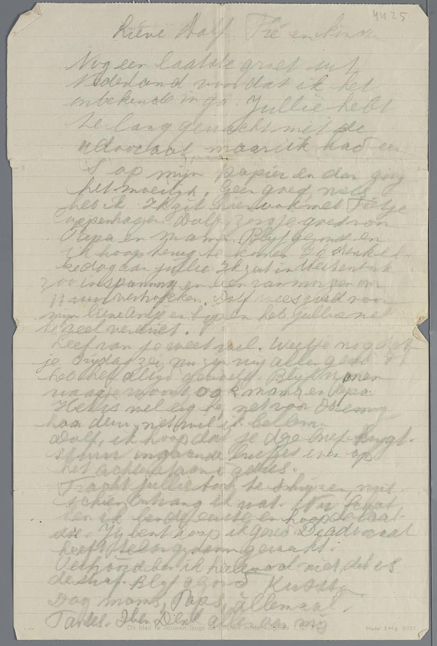Afscheidsbrief van het jongere zusje van Adolf aan de fam. Adolf Vos, 1942 (?)