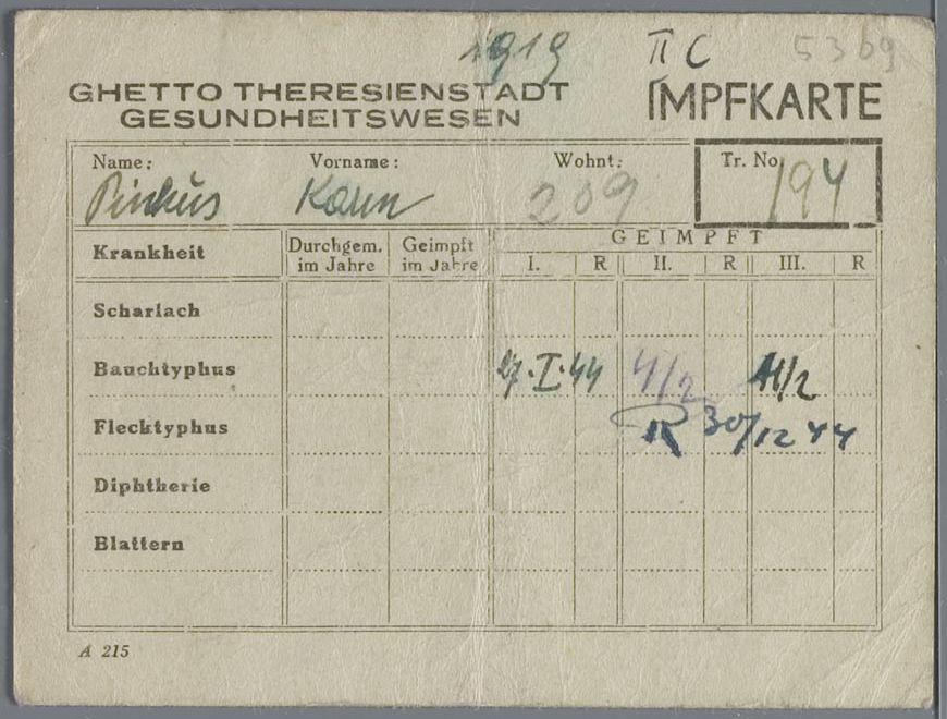 Ziektekaarten (2) uit Theresienstadt t.n.v. Karin Pinkus, 1945
