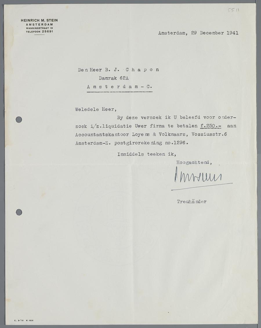 Correspondentie tussen Treuhänder H.M. Stein en B.J. Chapon, 1941-1942