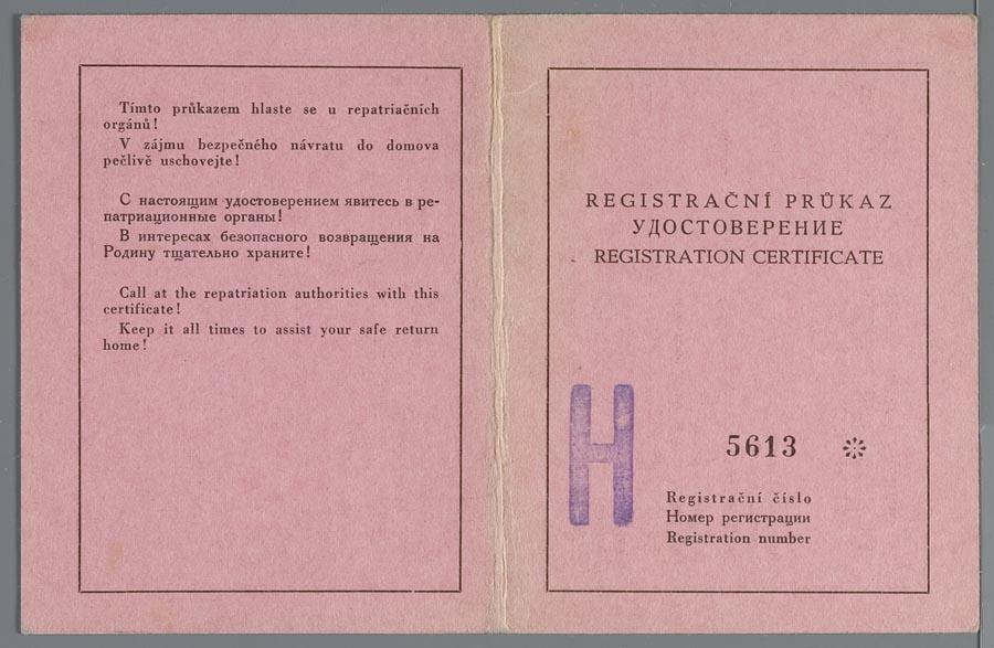 Registratiekaarten en repatriëringsdocumenten op naam van Jacob Herman Meijer en Lea Meijer-Kisch, 1945