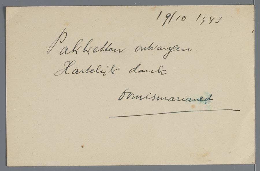 Briefkaarten (2) van fam. Engelander aan fam. Zom vanuit Westerbork, 1943