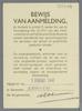 Handgeschreven op dit bewijs: 'daar heb ik 250 gl. voor betaald. Afzetters.' Op dit bewijs is Irene Kat de oorlog doorgekomen. De gegevens op dit bewijs zijn onjuist: geboortemaand, adres en aantal joodse grootouders klopt niet. Irene Kat had vier joodse grootouders.