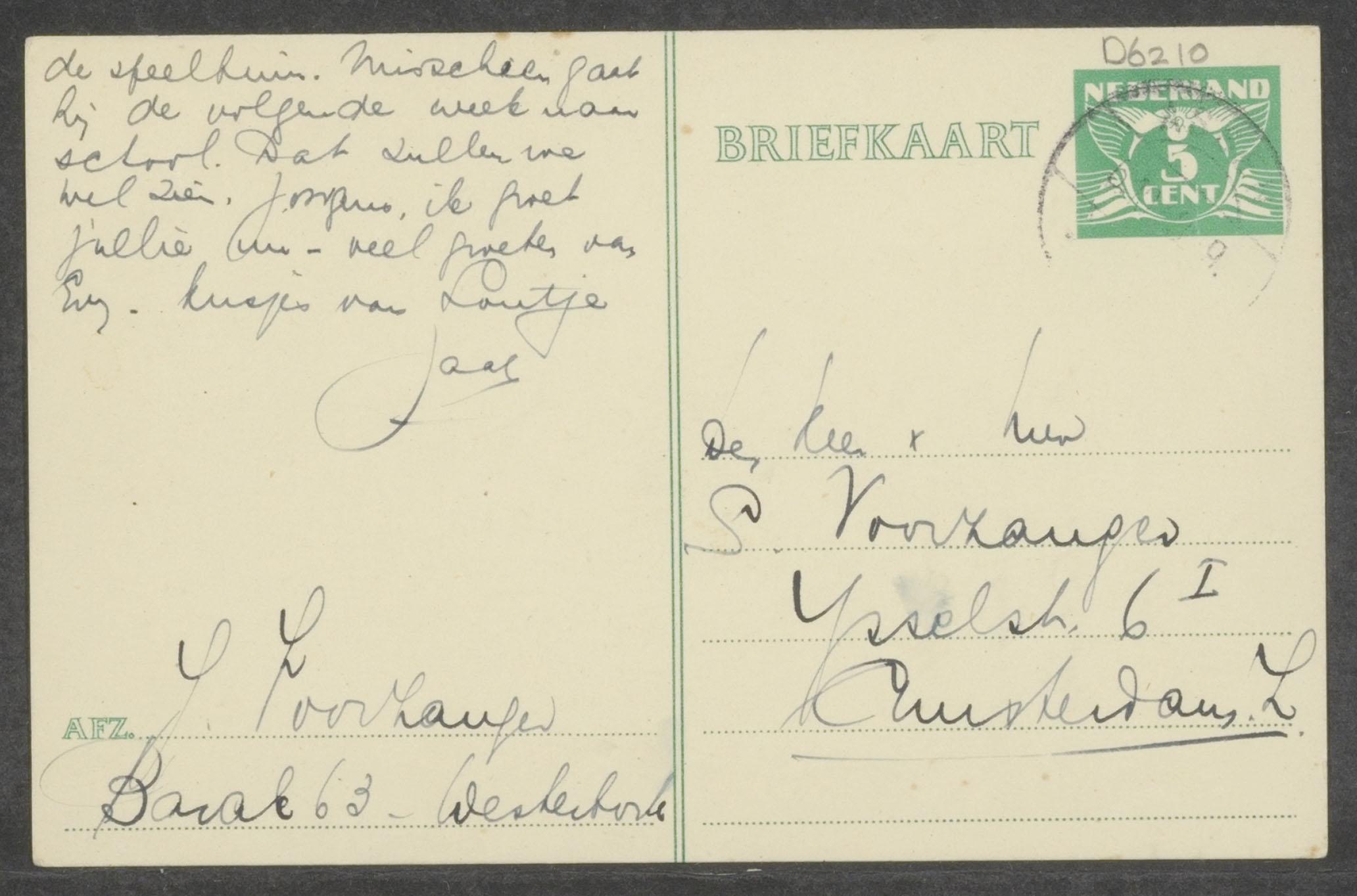 Briefkaart (4) van Jaap en Evy Voorzanger vanuit Westerbork aan Salomon en Emmy Voorzanger in Amsterdam, 1943