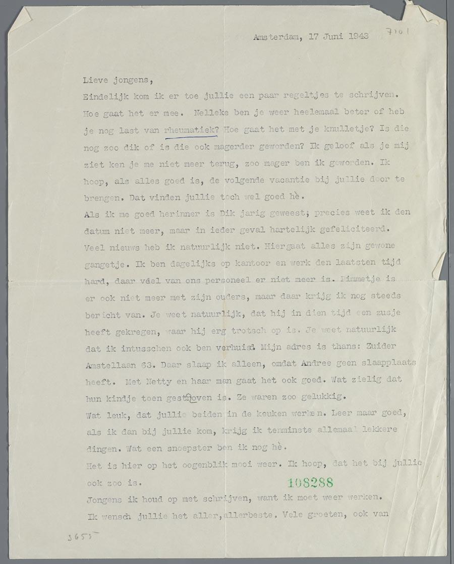 Brief, ondertekend door 'Jet' aan Hetty en Eduard van Vriesland tijdens hun ballingschap in Zwitserland, 1943