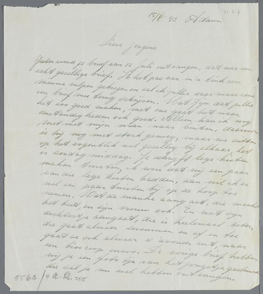 Brief aan Hetty en Eduard van Vriesland tijdens hun ballingschap in Zwitserland, augiustus 1943