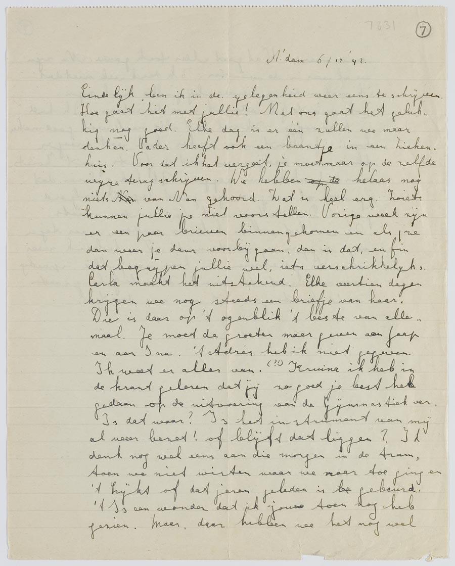 Brief van Ben Wessels aan Johan Schipper in Oostvoorne, Amsterdam, december 1942