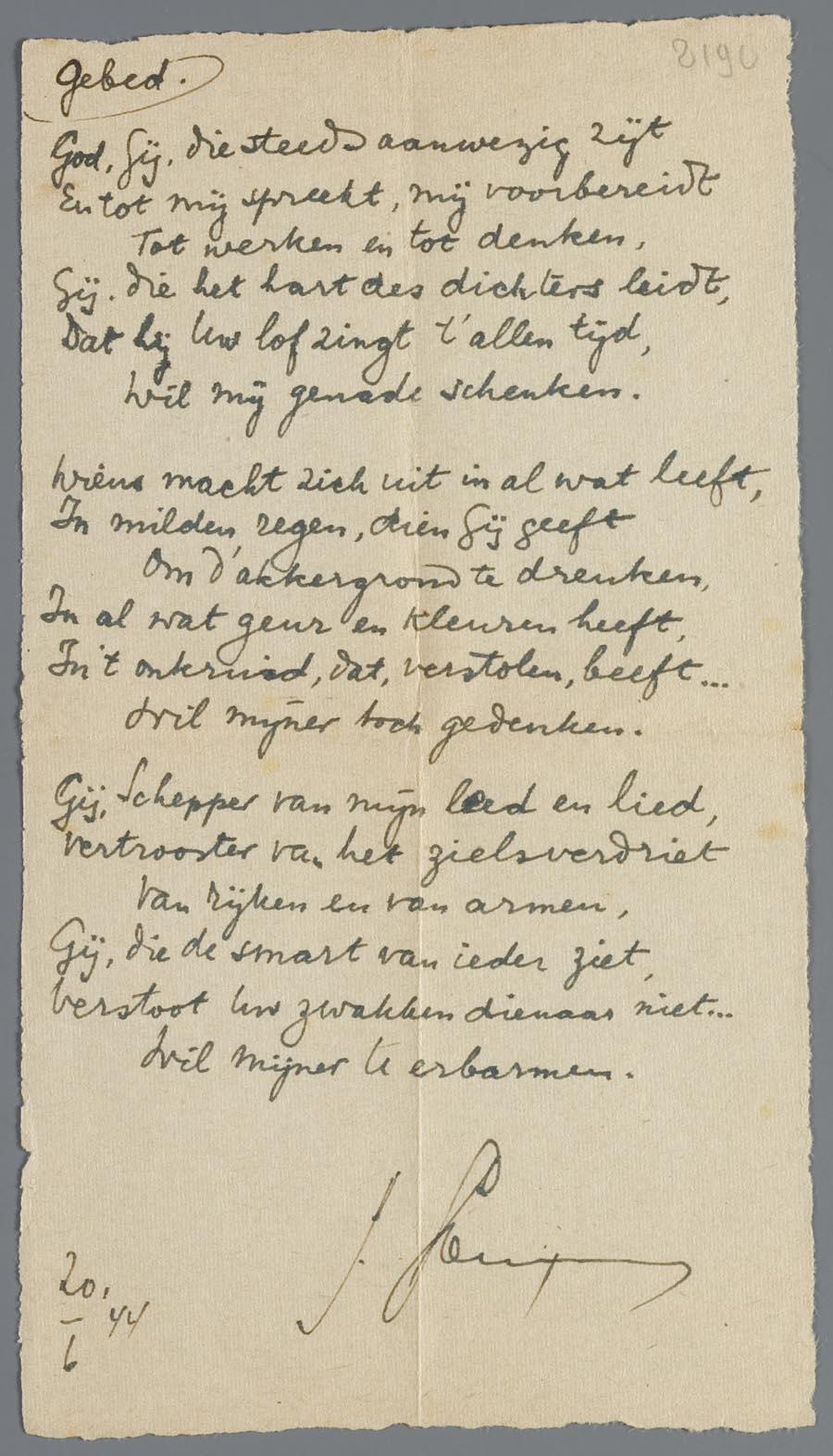 Gebed geschreven door Joseph Gompers in Bergen-Belsen, 1944