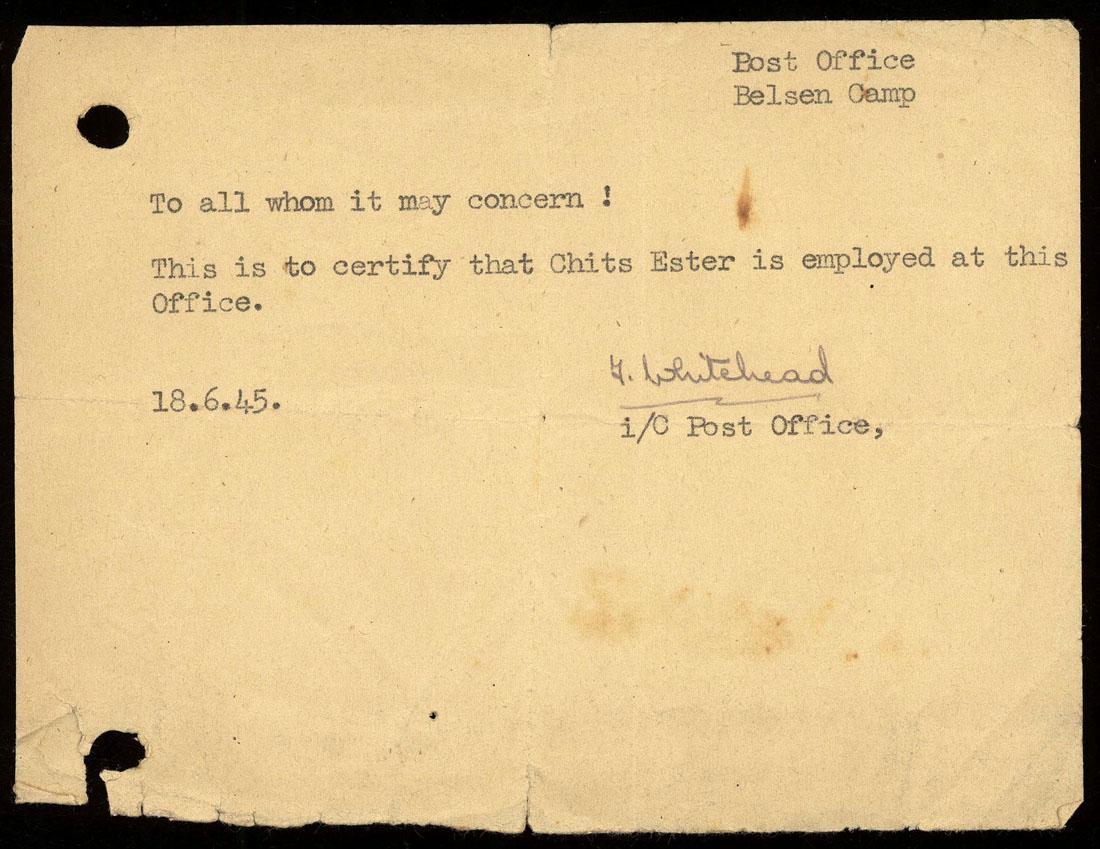 Het dossier bevat: - verklaring van een dienstverband bij het postkantoor in kamp Bergen Belsen ten name van Ester Chits, juni 1945. - uittreksels (4) uit de burgerlijke stand ten name van Esther Bachra en Siegfried Chits, 1951. - persoonsblad van de firma Van Leer met daarin een artikelen over Siegfried Chits en zijn echtgenote, 1968.