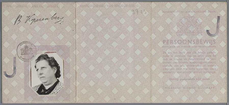 Persoonsbewijs met een "J" ten name van Branca Bremer-Koperenberg, 1941