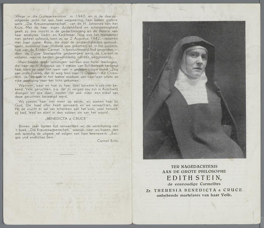 Bidprentje ter nagedachtenis aan Edith Stein (1891-1942), circa 1945