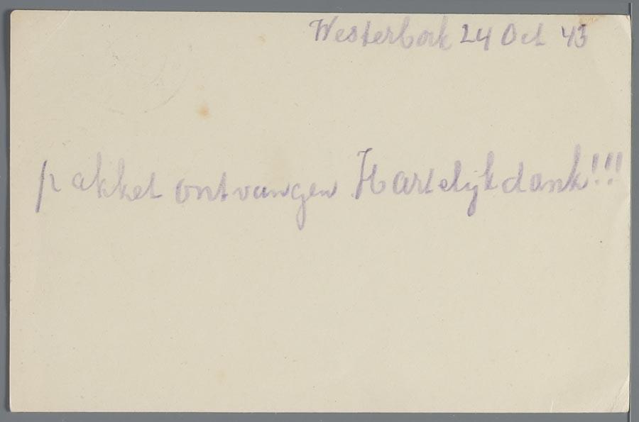 Brieven (4) en briefkaarten gewisseld tussen de heer Mo Fortuin en de familie Schuurman uit Amersfoort, 1942-1943