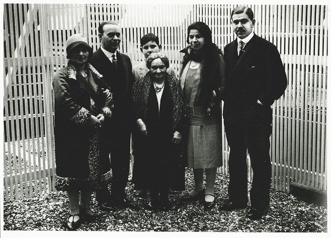 Documentatie met betrekking tot Abraham Tusschinski en zijn familie, circa 1997; 2 kleine enveloppen met foto's, 2 grote enveloppen met foto's, korte familiegeschiedenis, stamboom