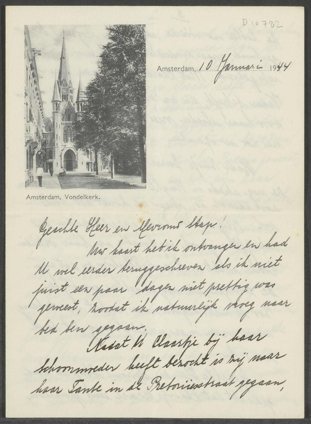 Brief van Rie Apol aan Elisabeth Stap-van Gelder en haar man Johan Stap over deportatie van Clara Reens-Speijer en haar familie, 1944