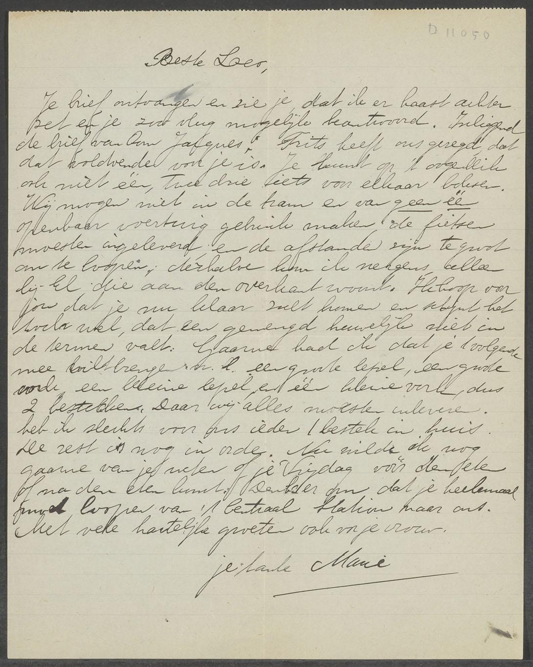 Brief van Marie Pimentel-Rodrigues Pereira aan Leo Baruch over onder andere anti-joodse maatregelen, 1942