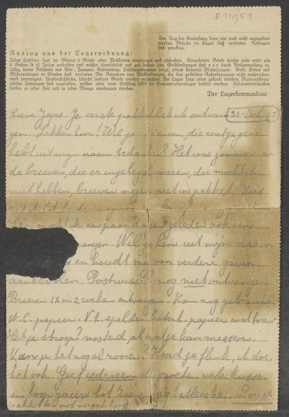 Brieven (3) die Levie Bed vanuit kamp Vught stuurde aan zijn echtgenote Jopie (Jannetje Catharina de Boer) in Amsterdam, 1943