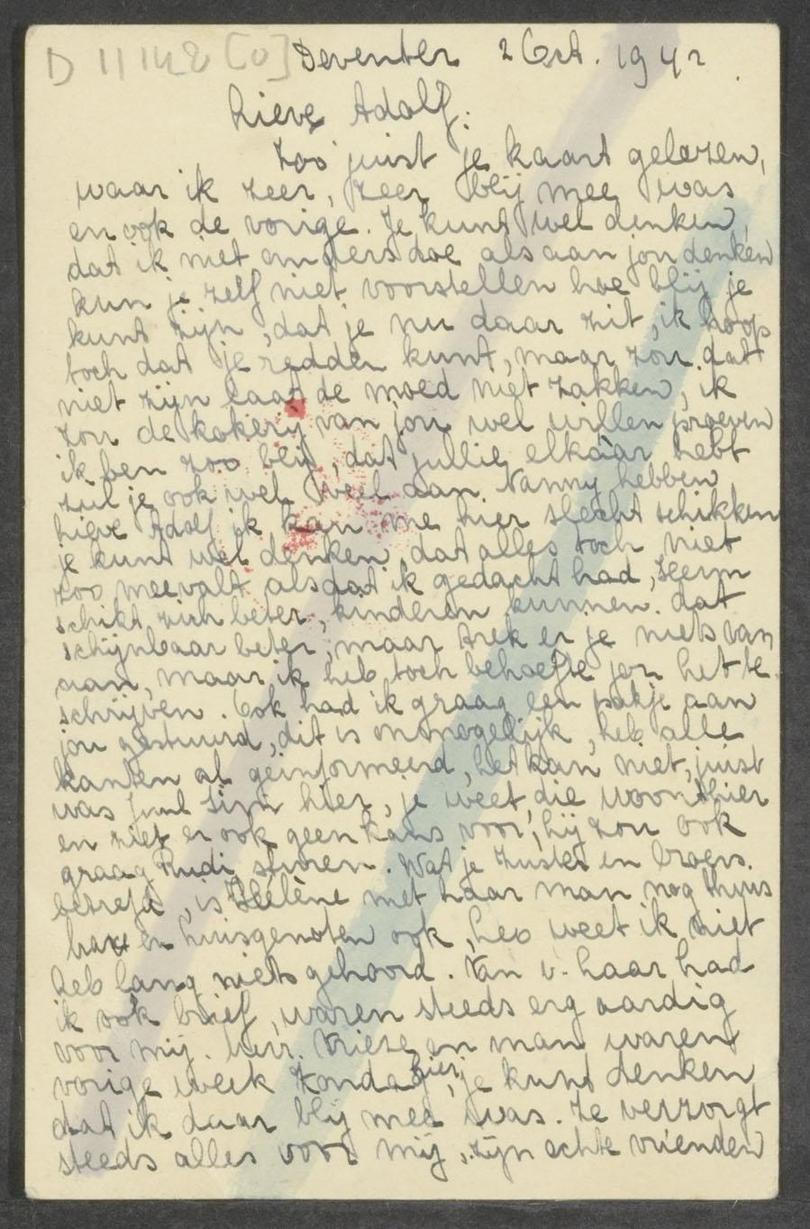 Brieven (5) en briefkaarten (8) van diverse afzenders aan Adolf Menco (Ad Stam) in Zwitserland, 1942-1945